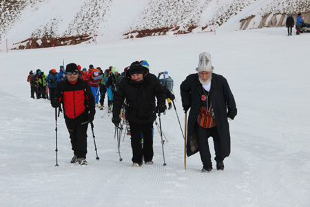 Sarıkamış Harekatı’nın 105. yılı etkinlikleri kapsamında dağcılar ve kayakçılar tarafından Erzurum’da 3200 rakımlı Palandöken Dağı’nın zirvesine yürüyüş düzenlendi. Elindeki bastonla yürüyüşe katılan 65 yaşındaki Salih Zorlu, “Unutulmak istenen tarihimizi yaşatmak için yürüyorum” dedi.