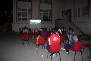 Saygı Duruşu ve İstiklal Marşı’nın okunmasının ardından görevliler ve mahalle sakinleri ile gönüllü gençler açık alanda zafer coşkusu ile ilgili filmler izledi.