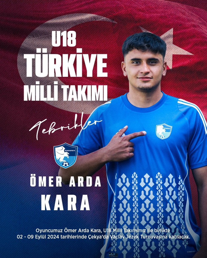 Erzurumspor kulübünden Ömer Arda Kara için yaptığı açıklamada, ‘Futbolcumuz Ömer Arda Kara, U18 Milli Takımımıza davet edildi. 02-09 Eylül 2024 tarihlerinde Çekya’da düzenlenecek olan Vaclav Jezek turnuvasına katılacak olan U18 Milli Takımımıza ve sevgili Arda’ya yürekten başarılar dileriz’ ifadeleri kullanıldı.