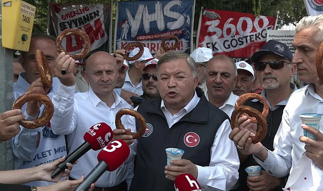 Devlet Memurları Sendikası Genel Başkanı Tuncay Cengiz, Çalışma ve Sosyal Güvenlik Bakanlığı önünde basın açıklaması yaptı. Cengiz, elinde simit ve ayran tutarak yaptığı açıklamada, şunları kaydetti: ‘Devletimizin memurlara vermiş olduğu yemek yardımı maalesef bugünlerde sadece bir simit ve bir ayran alabilecek durumda. Bu anlamda bizler de basın açıklamamıza katılan kamu çalışanlarımıza öğle yemeği olarak bir simit ve bir ayran ikram ediyoruz. İçinde bulunduğumuz durum bu. Yemek yardımımızın karşılığı budur. Giyecek yardım olarak verilen 90 lira. 90 lira parayla sizler bir iç giyim malzemesi dahi, çorap dahi alabilme imkânına sahip değilsiniz. Dolayısıyla bizler hem güncel yiyecek yardımı hem de güncel bir giyim yardımının memurlara verilmesini istiyoruz’ diye konuştu.