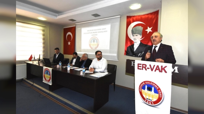 Genel kurulda konuşan ER-VAK Başkanı Erdal Güzel, 1991-2001 yılları arasında ER-VAK Başkanı olarak görev yapan Prof. Dr. Erol Oral ve Oral’dan aldığı Başkanlığı 2001-2004 yılları arasında yürüten Avukat Necati Bölükbaşı’nın unutulmaz hizmetler verdiğini hatırlattı. ER-VAK’ın partiler üstü Erzurum’un en önemli ve en büyük sivil toplum örgütü olduğuna dikkat çeken Erdal Güzel, tarihi kent Erzurum’un kültürel, sosyal ve ekonomik kalkınmasına yönelik etkin çalışmalar yaptıklarını bildirdi. Bu yıl 35 yaşına giren ER-VAK’ı kiracılıktan kurtardıklarını vurgulayan Erdal Güzel, bu konuda maddi destekte bulunan üyelerle iş adamı MNG Holding Yönetim Kurulu Başkanı Hüsamettin Yavuz’a , desteklerini esirgemeyen iş adamlarına teşekkür etti. Başkan Güzel, yakın bir gelecekte ER-VAK’ın Yakutiye ilçesindeki ofisinde hizmet vereceğini söyledi.