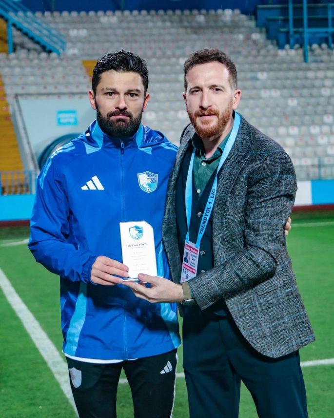 Kulüp tarihinin en fazla gol atan ismi olan Eren Tozlu, Esenler Erokspor’uda boş geçmedi. Golcü futbolcuya müsabaka öncesinde kulüp başkanı Ahmet Dal tarafından plaket verildi. Kulüpten yapılan açıklamada, ‘Kulüp Başkanımız Sayın Ahmet Dal, Erzurumspor Futbol Kulübümüzün tarihinde en çok gol atan oyuncu ünvanını kazanan futbolcumuz Eren Tozluya Esenler Erokspor maçı öncesi plaket vererek tebrik etti. Bu anlamlı rekoru kırarak bizleri fazlasıyla mutlu eden sevgili Eren Tozlu’yu bir kez daha kutluyor, şanlı Erzurumspor formamız altında nice rekorlara imza atmasını diliyoruz’ ifadeleri kullanıldı.