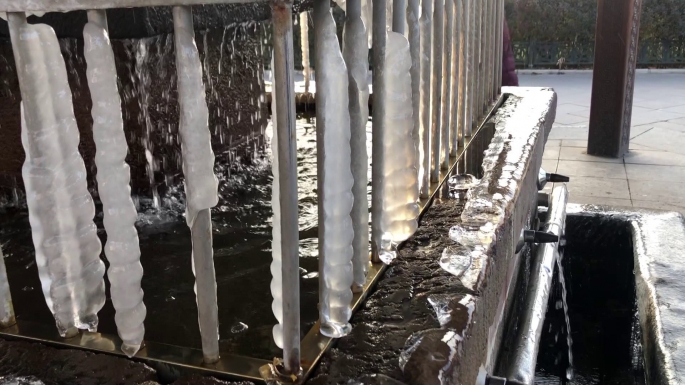 Ağır kış şartlarının yaşandığı Erzurum'da aralık ayının sonunda beklenen kar yağışının olmamasına rağmen soğuk hava etkili olmaya devam ediyor. Dondurucu soğuklar şadırvanlarda buz kütleleri oluşmasına neden oldu. Yakutiye ilçesinde yer alan Lala Paşa Camii avlusundaki şadırvanın çevresi buz ile kaplandı. Buz arasında akan çeşmeler adeta görsel şölen oluşturuyor.