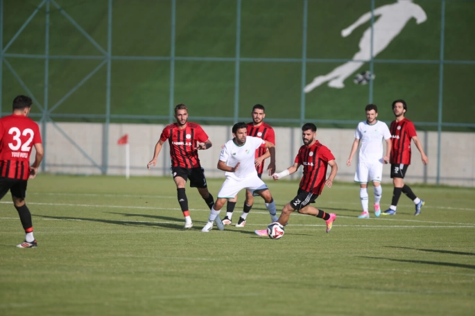 Bursaspor, Erzurum’daki hazırlık kampı kapsamında dördüncü antrenman maçında Karaköprü Belediyespor’la karşı karşıya geldi. Maça iyi başlayan yeşil-beyazlılar 6. dakikada Hakkı Türker’in ayağından bulduğu golle 1-0 öne geçti. İlk yarıda karşılıklı ataklardan ve gol pozisyonlarından sonuç çıkmadı ve soyunma odasına Bursa temsilcisi 1-0 önde girdi.