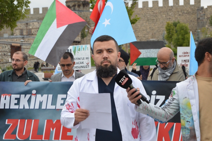 Bizler, zulme karşı duran hekimler ve sağlık çalışanları olarak, bu azgın topluluğa karşı mücadelemizi daha da şiddetlendireceğiz diye konuşan Doğan, ‘Üniversite kampüslerinden meydanlara kadar her yerde, Gazze halkına desteğimizi haykıracağız. Dün olduğu gibi bugün de İsrail’i ve onu meşru gören çürümüş insan müsveddelerini lanetlediğimizi ve her alanda boykot ettiğimizi ilan ediyoruz. Özellikle meslektaşlarımızdan, reçetelerde, hastanelerde ve eczanelerde yerli ilaçları tercih etmelerini önemle rica ediyoruz. Tüm devlet kurumlarını, işletme sahiplerini ve halkımızı aktif boykota ve milli sermayeye destek vermeye davet ediyoruz’ ifadelerini kullandı.