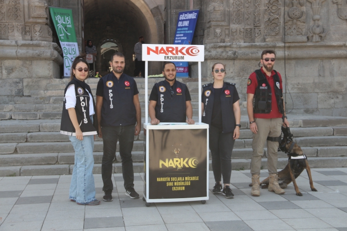 Kampanya bağlamında Çifte Minareli Medrese önünde stant kuran Narkotik Suçlarla Mücadele ekipleri vatandaşlara broşürler dağıtarak ve UYUMA (Uyuşturucuyla Mücadele Uygulaması) uygulamasını da tanıttı.