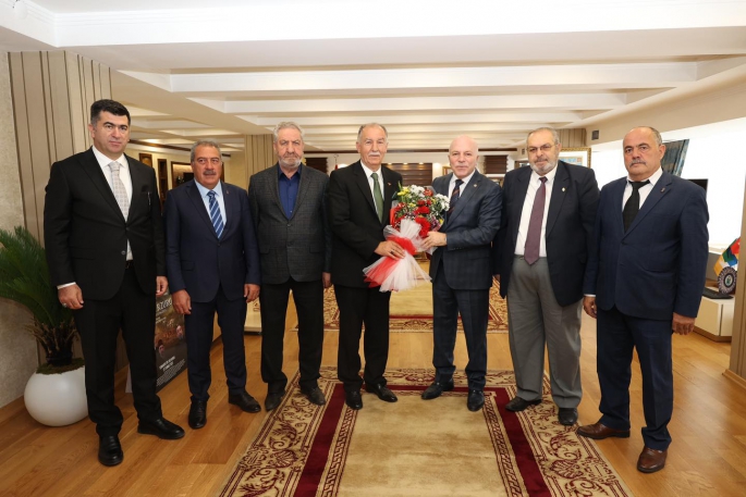 Erzurum Esnaf ve Sanatkârlar Odaları Birlik Başkanı Rasim Fırat ve yönetim heyeti, Ahilik Haftası dolayısıyla Erzurum büyükşehir belediyesi başkanı Mehmet Sekmen’e ziyarette bulundular.