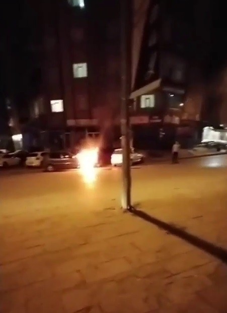 Aracın sahibi kadın aracının yanışını şok içinde izledi ve çevredeki vatandaşların cep telefonu kameralarına yansıyan görüntülerde yardım sesleri duyuldu.