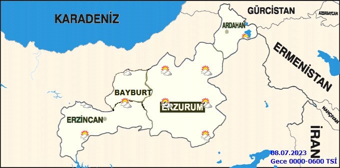 Meteorolojinin son verilerine göre, bölge genelinde havanın parçalı bulutlu, Erzurum ve Ardahan'ın kuzey kesimleri ile Erzincan, Bayburt ve çevrelerinin öğle saatlerinden itibaren yerel olmak üzere aralıklı sağanak ve gök gürültülü sağanak yağışlı geçeceği bildirildi. Hava sıcaklığı, mevsim normalleri civarında seyretmesi bekleniyor. Rüzgârın ise güneyli yönlerden hafif, zaman zaman orta kuvvette eseceği bildirildi.
